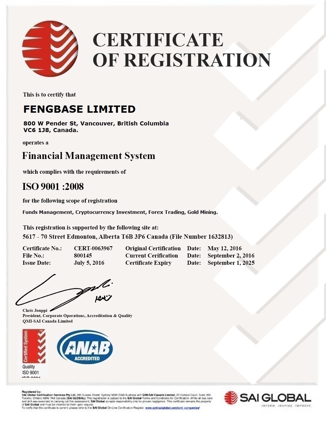 We are certified Canadian company and we are committed to our investors. We seek to form long-term relationships.